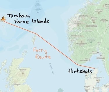 The ferry's route will take us south of Norway, across the North Sea, and north of Scotland's Shetland Islands. I'll pass north of North Sea oil and gas fields I worked on over two decades ago while living in Aberdeen.