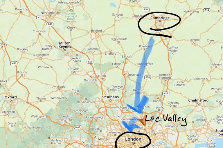 Tomorrow Reed and Carol arrive into London and we'll spend the next week together enjoying London. I didn't want to be delayed due to train cancellations so I booked a camping site just north of London on the outskirts. I could catch a bus from here to the VRBO. The place is called Lee Valley Caravan and Campground along the River Lea with its many lakes and reservoirs.