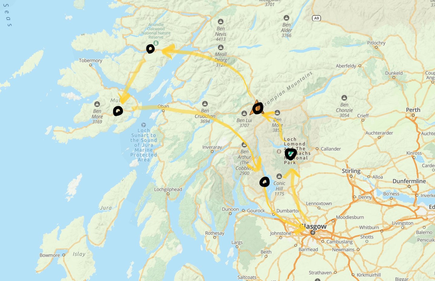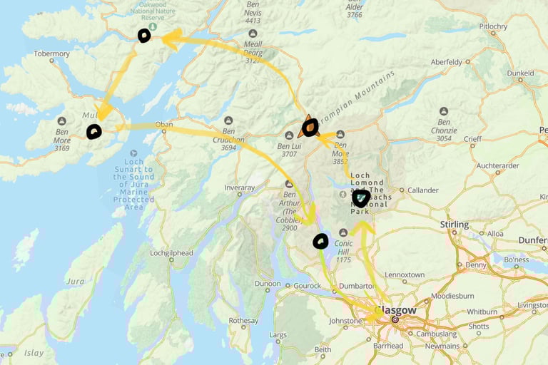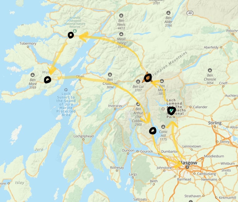 This visit to the area a couple hours north and west of Glosgow turned into a wonderful surprise of beautiful lochs and mountains.